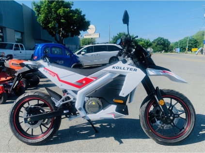 Superbe motocross électrique double usage KOLLTER de la marque TINBOT à seulement 6,199.99$* ou 29** / semaine ou 33$***/semaine avec 2 batteries et le kit de roues hors route ! Le motocross enduro KOLLTER de TINBOT est conçu avec tout simplement magnifique et il offre des performances et des options très intéressantes. Il est munit d’un moteur de 8.4 kw qui permet d’atteindre une vitesse de pointe de 70 km/h et d’une batterie qui procure une autonomie de 65 km. Ajouter une deuxième batterie en option pour 2,500$ pour doubler votre autonomie et atteindre 130 km. De plus, un kit de roues et pneus hors route est disponible pour seulement 600$ additionnel. Cette nouvelle génération de moto électrique double usage permet de se rendre au boulot la semaine puis de partir hors des sentiers battus au chalet le weekend, que demander de plus! En effet, celle-ci donne le plaisir de pouvoir l’utiliser à la fois sur la route ET hors route ! Comme elle a été conçue avec une performance unique pour la route, en plus, de la fiabilité et durabilité pour le tout-terrain, impossible de s’ennuyer avec cette machine ! Munie de 1 batteries de 32amp, un moteur de 72v, 5000w, puissance de pointe de 10 000w, sa vitesse maximum pouvant aller jusqu’à 70 km/h avec une autonomie de 130 km. Avec sa puissance de départ, impossible de ne pas avoir envie de s’aventurer dans toutes conditions ! De plus, la KOLLTER de TINBOT est admissible à un remboursement de 500$ du gouvernement via le programme « roulez vert » ! Au plaisir de vous conseiller ! MOTOSPORT MAURICIE BOIS-FRANCS 2515 Royale Au cœur de Trois-Rivières depuis 2005 Téléphone 819-379-2981 Site web www.motosportmbf.com * Version 1 batterie avec roues de route / Transport entrant et préparation 300$, taxes applicables en sus **Prêt ouvert remboursable en tout temps sans pénalité avec terme de 84 mois à taux fixe, sujet à approbation de crédit. *** Prêt ouvert remboursable en tout temps sans pénalité avec terme de 120 mois à taux fixe, sujet à approbation de crédit. ***