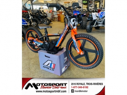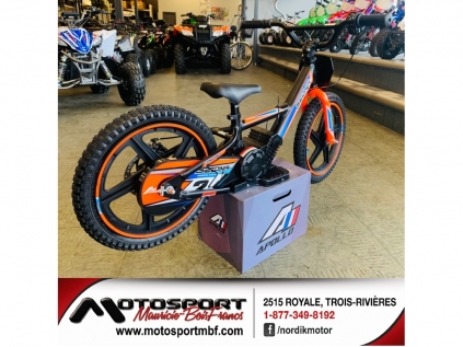 Nouveau vélo d’équilibre « balance bike » motocross APOLLO MOTORS RFN SEDNA 16 neuf à 649$* ou 37$** /mois Après une expérience de 15 ans en Pit bike Apollo Motors a développé une draisienne électrique sportive pour enfants : Sedna 16" 100W. Cette draisienne bénéficie des toutes dernières évolutions que le marché peut proposer. Légère, maniable et très complète, cette RFN Sedna 16 est parfaite pour les enfants de 3à 7ans : Cette draisienne électrique est ultra légère, spécialement conçue pour les enfants, pesant seulement 9 kg. Commencez leurs initiations jeunes, en utilisant le vélo comme un vélo à marcher conventionnel, avec son système de roue libre spécialement conçu. Ensuite, commencer en utilisant l'assistance électrique en mode vitesse lente (8km/h) votre enfant pourra poser ses pieds sur les repose-pieds tout en utilisant son équilibre. Tout est en extrêmement simple, votre enfant poussera la gâchette de sa manette de gaz pour accélérer, il pourra par la suite passer à une vitesse supérieur en utilisant le réglage vitesse rapide (16km/h). Ce vélo à marcher est équipé de pneus hybrides adaptés à une utilisation sur route et hors route et un moteur à chaîne offrant des performances fiables. Au niveau finition, vous ne serez pas déçu, en effet Apollo a utilisé des pièces de qualités: Cadre et guidon en aluminium ce qui permet à cette draisienne de pesé seulement 9KG batterie incluse, et d'une batterie au Lithium donnant la possibilité d'utiliser le vélo jusqu'à 1h15min en utilisation constante avec seulement une charge de 2h30! Osez comparer avec Artic Cat, BRP / Can-Am, CF Moto, John Deere, Honda, Kawasaki, Polaris, Suzuki, Yamaha et économiser gros! Venez nous rencontrer et il nous fera plaisir de vous conseiller! MOTOSPORT MAURICIE BOIS-FRANCS 2515 Royale Au cœur de Trois-Rivières depuis 2005 Sans frais 877-349-8192 Site web www.motosportmbf.com CONCESSIONNAIRE des marques ; Apollo Motors, Brigg & Stratton, Daymak, Gio Electric, Honda Petits Moteurs, Husqvarna (Red Max), Matrix EV, ScootTerre, Snow Dog, Super Soco, Tao Motors et +++. * Taxes en sus ** Prêt ouvert avec terme de 24 mois à taux fixe, sujet à approbation de crédit