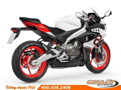 APRILIA RS 457 2025 - OPALESCENT LIGHT     \*\*\*  TRANSPORT ET PREPARATION INCLUS DANS LE PRIX \*\*\*     Moto agile, dynamique, facile à conduire et sans compromis sur son ADN sportif, la RS 457 offre les performances que vous attendez d'un niveau supérieur, grâce à son moteur bicylindre parallèle et à son châssis robuste en aluminium, unique dans le segment. Avec son package électronique qui fourni l'antipatinage modifiable, les modes de conduites ajustable et l'écran couleur TFT, cette 457 offre le meilleur équipement de sa catégorie ainsi que le meilleur ratio poids/puissance. l'Aprilia RS457 est une vrai mini-bombe sérieuse et abordable.     - Moteur bicylindre à injection de 457cc avec vilbrequin monté à 270 degrés pour plus de sensation et torque.   - Chassis en aluminium, unique dans la catégorie.   - Lumière LED   - Frein avant 4 pistons de type radial avec ligne tressé métal de Bybre fait par Brembo.   - ABS avant et arrière ajustable (2 maps)   - Ride-by-wire avec modes de conduites ajustables   - Contrôle de traction ajustable en 3 modes   - Fourche ajustable en pré-load   - Écran TFT couleur 5pc   - Commande rétroéclairé   - Quickshifter optionnel     Cette unité est chez Goulet Moto Sports de Ste-Thérèse. Téléphonez au 450.435.2408     Possibilité de financement avec plusieurs institutions financières. 2ième chance au crédit disponible. Option de financement Aprilia disponible sur PDSF     Goulet Moto Sports est votre concessionnaire moto depuis 1968. Fier représentant officiel des marques HONDA, APRILIA, MOTO GUZZI, VESPA, PIAGGIO, KTM, NIU, SURRON et URAL pour le grand Montréal. Nous avons un énorme choix de moto usagés inspectées par nos professionnels. 2 adresses pour vous servir, soit à Sainte-Thérèse (450.435.2408) et Saint-Jérôme (450.431.6622).     Goulet Moto Sports ne peut être tenu responsable d'une omission, d'un délai ou d'une erreur de transcription de l'information. Le prix affiché reflète la condition de l'unité. Pour différentes raisons les prix peuvent différer de ceux indiqués en ligne. Les données sont affichées à titre indicatif seulement et ne peuvent être considérées comme une information contractuelle. Nous vous encourageons vivement à nous consulter pour plus de détails avant de vous déplacer. Des frais tels que taxes, immatriculation, administrations ou autres peuvent s'appliquer.     Se compare très avantageusement aux Yamaha R3, Honda CBR 500, Kawasaki Ninja 400, Z400, KTM Duke 390, BMW G 310R, CF Moto 450SS, 450NK, Husqvarna 401   Essence, Transmission: Manuelle, 6 vitesses, Système de refroidissement: Refroidi au liquide, 2 cylindres, 47.0 CV, 457.0 CC, Garantie: 2 ANS   ----------------------   APRILIA RS 457 2025 - OPALESCENT LIGHT     \*\*\* TRANSPORT AND PREPARATION COSTS INCLUDED IN THE PRICE \*\*\*     Agile, dynamic, easy to drive and without compromising on its sporting DNA, the RS 457 offers the performance you expect at a higher level, thanks to its parallel twin-cylinder engine and its robust aluminum chassis, unique in the segment. With its electronic package which provides modifiable traction control, adjustable driving modes and TFT color screen, this 457 offers the best equipment in its category as well as the best weight/power ratio. The Aprilia RS457 is a serious and affordable mini-bomb.     - 457cc twin-cylinder fuel-injected engine with 270-degree crankshaft for greater feel and torque.   - Aluminum chassis, unique in the category.   - LED light   - 4-piston radial-type front brake with metal braided line from Bybre made by Brembo.   - Adjustable front and rear ABS (2 maps)   - Ride-by-wire with adjustable riding modes   - Adjustable traction control in 3 modes   - Fork adjustable in pre-load   - 5pc color TFT display   - Backlit control   - Optional quickshifter     This unit is at Goulet Moto Sports in Ste-Thérèse. Call 450.435.2408     Possibility of financing with several financial institutions. 2nd chance credit available. Aprilia financing option available at MSRP     Goulet Moto Sports has been your motorcycle dealership since 1968. Proud official representative of the HONDA, APRILIA, MOTO GUZZI, VESPA, PIAGGIO, KTM, NIU, SURRON and URAL brands for greater Montreal. We have a huge selection of used motorcycles inspected by our professionals. 2 addresses to serve you, in Sainte-Thérèse (450.435.2408) and Saint-Jérôme (450.431.6622).     Goulet Moto Sports cannot be held responsible for an omission, delay or error in transcribing information. The price shown reflects the condition of the unit. For various reasons prices may differ from those indicated online. The data is displayed for informational purposes only and cannot be considered as contractual information. We strongly encourage you to contact us for more details before traveling. Fees such as taxes, registration, administration or others may apply.     Compares very favorably to Yamaha R3, Honda CBR 500, Kawasaki Ninja 400, Z400, KTM Duke 390, BMW G 310R, CF Moto 450SS, 450NK, Husqvarna 401   Gasoline, Transmission: Manual, 6 speeds, Cooling System: Liquid cooling, 2 cylinders, 47.0 HP, 457.0 CC, Warranty: 2 ANS