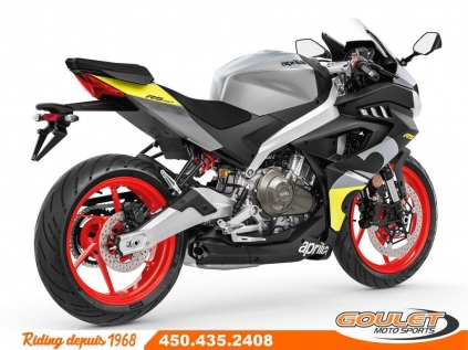APRILIA RS 457 - ARSENIC YELLOW \*\*\* TRANSPORT ET PREPARATION INCLUS DANS LE PRIX \*\*\* Moto agile, dynamique, facile à conduire et sans compromis sur son ADN sportif, la RS 457 offre les performances que vous attendez d'un niveau supérieur, grâce à son moteur bicylindre parallèle et à son châssis robuste en aluminium, unique dans le segment. Avec son package électronique qui fourni l'antipatinage modifiable, les modes de conduites ajustable et l'écran couleur TFT, cette 457 offre le meilleur équipement de sa catégorie ainsi que le meilleur ratio poids/puissance. l'Aprilia RS457 est une vrai mini-bombe sérieuse et abordable. - Moteur bicylindre à injection de 457cc avec vilbrequin monté à 270 degrés pour plus de sensation et torque. - Chassis en aluminium, unique dans la catégorie. - Lumière LED - Frein avant 4 pistons de type radial avec ligne tressé métal de Bybre fait par Brembo. - ABS avant et arrière ajustable (2 maps) - Ride-by-wire avec modes de conduites ajustables - Contrôle de traction ajustable en 3 modes - Fourche ajustable en pré-load - Écran TFT couleur 5pc - Commande rétroéclairé - Quickshifter optionnel Cette unité est chez Goulet Moto Sports de Ste-Thérèse. Téléphonez au 450.435.2408 Possibilité de financement avec plusieurs institutions financières. 2ième chance au crédit disponible. Option de financement Aprilia disponible sur PDSF Goulet Moto Sports est votre concessionnaire moto depuis 1968. Fier représentant officiel des marques HONDA, APRILIA, MOTO GUZZI, VESPA, PIAGGIO, KTM, NIU, SURRON et URAL pour le grand Montréal. Nous avons un énorme choix de moto usagés inspectées par nos professionnels. 2 adresses pour vous servir, soit à Sainte-Thérèse (450.435.2408) et Saint-Jérôme (450.431.6622). Goulet Moto Sports ne peut être tenu responsable d'une omission, d'un délai ou d'une erreur de transcription de l'information. Le prix affiché reflète la condition de l'unité. Pour différentes raisons les prix peuvent différer de ceux indiqués en ligne. Les données sont affichées à titre indicatif seulement et ne peuvent être considérées comme une information contractuelle. Nous vous encourageons vivement à nous consulter pour plus de détails avant de vous déplacer. Des frais tels que taxes, immatriculation, administrations ou autres peuvent s'appliquer. Se compare très avantageusement aux Yamaha R3, Honda CBR 500, Kawasaki Ninja 400, Z400, KTM Duke 390, BMW G 310R, CF Moto 450SS, 450NK, Husqvarna 401 Essence, Transmission: Manuelle, 6 vitesses, Système de refroidissement: Refroidi au liquide, 2 cylindres, 47.0 CV, 457.0 CC, Garantie: 2 ANS ---------------------- APRILIA RS 457 - ARSENIC YELLOW \*\*\* TRANSPORT AND PREPARATION COSTS INCLUDED IN THE PRICE \*\*\* Agile, dynamic, easy to drive and without compromising on its sporting DNA, the RS 457 offers the performance you expect at a higher level, thanks to its parallel twin-cylinder engine and its robust aluminum chassis, unique in the segment. With its electronic package which provides modifiable traction control, adjustable driving modes and TFT color screen, this 457 offers the best equipment in its category as well as the best weight/power ratio. The Aprilia RS457 is a serious and affordable mini-bomb. - 457cc twin-cylinder fuel-injected engine with 270-degree crankshaft for greater feel and torque. - Aluminum chassis, unique in the category. - LED light - 4-piston radial-type front brake with metal braided line from Bybre made by Brembo. - Adjustable front and rear ABS (2 maps) - Ride-by-wire with adjustable riding modes - Adjustable traction control in 3 modes - Fork adjustable in pre-load - 5pc color TFT display - Backlit control - Optional quickshifter This unit is at Goulet Moto Sports in Ste-Thérèse. Call 450.435.2408 Possibility of financing with several financial institutions. 2nd chance credit available. Aprilia financing option available at MSRP Goulet Moto Sports has been your motorcycle dealership since 1968. Proud official representative of the HONDA, APRILIA, MOTO GUZZI, VESPA, PIAGGIO, KTM, NIU, SURRON and URAL brands for greater Montreal. We have a huge selection of used motorcycles inspected by our professionals. 2 addresses to serve you, in Sainte-Thérèse (450.435.2408) and Saint-Jérôme (450.431.6622). Goulet Moto Sports cannot be held responsible for an omission, delay or error in transcribing information. The price shown reflects the condition of the unit. For various reasons prices may differ from those indicated online. The data is displayed for informational purposes only and cannot be considered as contractual information. We strongly encourage you to contact us for more details before traveling. Fees such as taxes, registration, administration or others may apply. Compares very favorably to Yamaha R3, Honda CBR 500, Kawasaki Ninja 400, Z400, KTM Duke 390, BMW G 310R, CF Moto 450SS, 450NK, Husqvarna 401 Gasoline, Transmission: Manual, 6 speeds, Cooling System: Liquid cooling, 2 cylinders, 47.0 HP, 457.0 CC, Warranty: 2 ANS