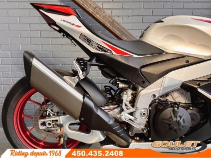 APRILIA RSV4 1100 FACTORY 2023 SPEED WHITE \*\*\* ÉDITION LIMITÉE ULTRA RARE – COLORIS SPEED WHITE, ÉTAT COMME NEUF \*\*\* L'Aprilia RSV4 Factory 2023 est une superbike de calibre mondial, directement inspirée de la compétition. Dotée d'un moteur V4 ultra performant et d'une électronique de pointe, elle offre une précision chirurgicale et des sensations incomparables sur route comme sur piste. L'édition White Speed a été annoncé lors du Grand Prix des USA à Austin. Moins de 10 unités ont été disponible pour le Canada ? Version Factory haut de gamme, finition Speed White, moto extrêmement propre et prête à performer. - Moteur V4 de 1099 cc développant une puissance impressionnante et une sonorité unique. 217HP - Suspension électronique Öhlins Smart EC 2.0 pour un ajustement dynamique et précis - Freins Brembo haute performance pour un freinage puissant et constant - Électronique APRC complète : contrôle de traction, wheelie control, launch control, quickshifter - Modes de conduite avancés pour adapter la moto à la route ou à la piste - Écran TFT couleur avec interface intuitive et connectivité - Aérodynamique inspirée du MotoGP avec ailettes intégrées pour plus de stabilité à haute vitesse - Châssis aluminium ultra précis offrant une maniabilité exceptionnelle ?? Disponible chez Goulet Moto Sports Ste-Thérèse. Téléphonez au 450.435.2408 Financement disponible via plusieurs institutions financières. 2e chance au crédit acceptée. Goulet Moto Sports est votre concessionnaire moto depuis 1968. Fier représentant officiel de HONDA, APRILIA, MOTO GUZZI, VESPA, PIAGGIO, KTM, NIU, SURRON et URAL pour la grande région de Montréal. Nous proposons aussi un large inventaire de motos d'occasion, toutes soigneusement inspectées. Deux succursales pour mieux vous servir : Sainte-Thérèse (450.435.2408) et Saint-Jérôme (450.431.6622). Goulet Moto Sports ne peut être tenu responsable des omissions, retards ou erreurs de transcription. Le prix affiché reflète l'état du véhicule. Pour diverses raisons, le prix peut différer de celui indiqué en ligne. Les données fournies sont à titre indicatif seulement et ne constituent pas une information contractuelle. Nous vous encourageons fortement à nous contacter avant votre visite. Des frais additionnels tels que taxes, immatriculation, administration ou autres peuvent s'appliquer. ?? Modèles comparables : Yamaha R1M, BMW S1000RR, Ducati Panigale V4, Honda CBR1000RR-R Fireblade SP. Essence, Transmission: Manuelle, 6 vitesses, Système de refroidissement: Refroidi au liquide, 4 cylindres, 217.0 CV, 1100.0 CC, Garantie: 1 MOIS ---------------------- 2023 APRILIA RSV4 1100 FACTORY SPEED WHITE \*\*\* ULTRA RARE LIMITED EDITION – SPEED WHITE COLOR, LIKE NEW CONDITION \*\*\* The 2023 Aprilia RSV4 Factory is a world-class superbike, directly inspired by racing. Equipped with a high-performance V4 engine and cutting-edge electronics, it offers surgical precision and unparalleled feel on both road and track. The Speed ??White edition was announced at the US Grand Prix in Austin. Fewer than 10 units were available for Canada. ? Top-of-the-line Factory version, Speed ??White finish, extremely clean and ready to perform. - 1099cc V4 engine delivering impressive power and a unique sound. 217HP - Öhlins Smart EC 2.0 electronic suspension for dynamic and precise adjustments - High-performance Brembo brakes for powerful and consistent braking - Full APRC electronics: traction control, wheelie control, launch control, quickshifter - Advanced riding modes to adapt the motorcycle for the road or track - Color TFT display with intuitive interface and connectivity - MotoGP-inspired aerodynamics with integrated winglets for increased stability at high speeds - Ultra-precise aluminum chassis offering exceptional handling ?? Available at Goulet Moto Sports Ste-Thérèse. Call 450.435.2408 Financing available through several financial institutions. Second chance credit accepted. Goulet Moto Sports has been your motorcycle dealer since 1968. Proud official representative of HONDA, APRILIA, MOTO GUZZI, VESPA, PIAGGIO, KTM, NIU, SURRON, and URAL for the greater Montreal area. We also offer a large inventory of used motorcycles, all carefully inspected. Two locations to better serve you: Sainte-Thérèse (450.435.2408) and Saint-Jérôme (450.431.6622). Goulet Moto Sports cannot be held responsible for omissions, delays, or transcription errors. The displayed price reflects the vehicle's condition. For various reasons, the price may differ from the online price. The information provided is for informational purposes only and does not constitute contractual information. We strongly encourage you to contact us before your visit. Additional fees such as taxes, registration, administration, or other charges may apply. ?? Comparable models: Yamaha R1M, BMW S1000RR, Ducati Panigale V4, Honda CBR1000RR-R Fireblade SP. Gasoline, Transmission: Manual, 6 speeds, Cooling System: Liquid cooling, 4 cylinders, 217.0 HP, 1100.0 CC, Warranty: 1 MOIS