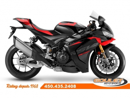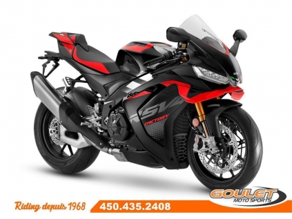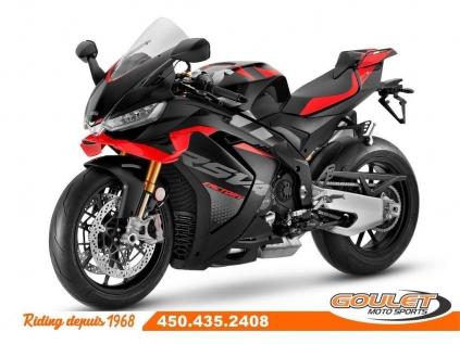 APRILIA RSV4 V4 1100 FACTORY - DARK KRAKEN \*\*\* TRANSPORT ET PRÉPARATION INCLUS DANS LE PRIX \*\*\* La moto Super Sportive dérivé de la course par Aprilia. La réputation de la RSV4 n'est plus à faire grâce à son moteur unique V4 de 220hp. Désormais dotée de winglets intégrés, d'une efficacité aérodynamique améliorée, associés au châssis unique d'Aprilia, son nouveau bras oscillant et son package électronique complet, la Aprilia RSV4 est la reine de la catégorie sport. - Moteur amélioré : Nouveau moteur V4 de 1099 cm³, offrant 220 chevaux pour une performance maximale sur route et circuit. - Suspension Öhlins Smart EC 2.0 : Suspension électronique de haute performance, permettant un ajustement en temps réel. - Système APRC de dernière génération : Nouvelles versions des systèmes Traction Control, Wheelie Control, et Launch Control - Design retravaillé : Nouveau carénage plus aérodynamique et un look plus agressif, améliorant la stabilité à haute vitesse. - Écran TFT couleur : Nouveau tableau de bord avec interface Bluetooth - Freins Brembo avec Cornering ABS : Technologie avancée pour une sécurité maximale en courbe et un freinage ultra-réactif. - Batterie lithium-ion : Moins de poids et meilleure performance énergétique. - Nouveaux modes de conduite : Cinq modes sélectionnables pour adapter la moto à différentes conditions de conduite. - Commandes avec rétroéclairage LED : Les boutons sont désormais rétroéclairés, offrant une meilleure visibilité dans des conditions de faible éclairage. Cette unité est chez Goulet Moto Sports de Ste-Thérèse. Téléphonez au 450.435.2408 Possibilité de financement avec plusieurs institutions financières. 2ième chance au crédit disponible. Goulet Moto Sports est votre concessionnaire moto depuis 1968. Fier représentant officiel des marques HONDA, APRILIA, MOTO GUZZI, VESPA, PIAGGIO, KTM, NIU, SURRON et URAL pour le grand Montréal. Nous avons un énorme choix de moto usagés inspectées par nos professionnels. 2 adresses pour vous servir, soit à Sainte-Thérèse (450.435.2408) et Saint-Jérôme (450.431.6622). Goulet Moto Sports ne peut être tenu responsable d'une omission, d'un délai ou d'une erreur de transcription de l'information. Le prix affiché reflète la condition de l'unité. Pour différentes raisons les prix peuvent différer de ceux indiqués en ligne. Les données sont affichées à titre indicatif seulement et ne peuvent être considérées comme une information contractuelle. Nous vous encourageons vivement à nous consulter pour plus de détails avant de vous déplacer. Des frais tels que taxes, immatriculation, administrations ou autres peuvent s'appliquer. Se compare avantageusement à une BMW S1000RR, Ducati Panigale, Yamaha R1, Kawasaki ZX-10, Suzuki GSXR1000 Essence, Transmission: Manuelle, 6 vitesses, Système de refroidissement: Refroidi au liquide, 4 cylindres, 220.0 CV, 1099.0 CC, Garantie: 2 ANS ---------------------- APRILIA RSV4 V4 1100 FACTORY - DARK KRAKEN \*\*\* TRANSPORT AND PREPARATION INCLUDED IN THE PRICE \*\*\* The Super Sport bike derived from racing by Aprilia. The reputation of the RSV4 is well established thanks to its unique V4 engine producing 220hp. Now equipped with integrated winglets, improved aerodynamic efficiency, combined with Aprilia's unique chassis, new swingarm, and a complete electronic package, the Aprilia RSV4 is the queen of the sport category. - Improved Engine: New 1099 cm³ V4 engine, delivering 220 horsepower for maximum performance on both road and track. - Öhlins Smart EC 2.0 Suspension: High-performance electronic suspension for real-time adjustments. - Next-Generation APRC System: New versions of Traction Control, Wheelie Control, and Launch Control systems, - New Electronics: Enhanced Ride-by-Wire system for finer throttle and power management. - Redesigned Aesthetics: New, more aerodynamic fairing with a more aggressive look, improving stability at high speeds. - Color TFT Display: New dashboard with Bluetooth interface for modern connectivity and more precise riding information. - Brembo Brakes with Cornering ABS: Advanced technology for maximum safety in corners and ultra-responsive braking. - Lithium-ion Battery: Lighter weight and better energy performance. - New Riding Modes: Five selectable modes to adapt the bike to different riding conditions. - Backlit LED Command Buttons: Buttons are now backlit for better visibility in low light conditions. This unit is available at Goulet Moto Sports in Ste-Thérèse. Call us at 450-435-2408. Financing options available through multiple financial institutions. 2nd chance credit available. Goulet Moto Sports has been your motorcycle dealer since 1968. Proud official representative of the brands HONDA, APRILIA, MOTO GUZZI, VESPA, PIAGGIO, KTM, NIU, SURRON, and URAL for the Greater Montreal area. We offer a huge selection of professionally inspected used motorcycles. We have two locations to serve you: Sainte-Thérèse (450-435-2408) and Saint-Jérôme (450-431-6622). Goulet Moto Sports cannot be held responsible for omissions, delays, or transcription errors. The displayed price reflects the condition of the unit. Prices may differ for various reasons from what is indicated online. The information is provided for guidance purposes only and should not be considered contractual. We strongly recommend that you consult us for more details before coming in. Additional fees such as taxes, registration, administration, or others may apply. Compares favorably to a BMW S1000RR, Ducati Panigale, Yamaha R1, Kawasaki ZX-10, Suzuki GSXR1000 Gasoline, Transmission: Manual, 6 speeds, Cooling System: Liquid cooling, 4 cylinders, 220.0 HP, 1099.0 CC, Warranty: 2 ANS