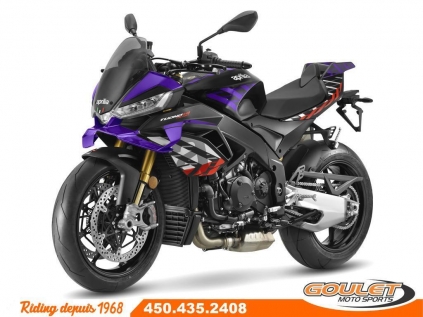APRILIA TUONO V4 1100 FACTORY - SHAKEDOWN YELLOW \*\*\* Transport et préparation inclus dans le prix \*\*\* L'Aprilia Tuono V4 Factory est une véritable machine à performance, avec de nouvelles lignes, un nouvel aérodynamisme avec des ailerons intégrés, un bras oscillant issu du Moto GP, une électronique avancée et 180 puissants chevaux. La version Factory possède une position de conduite plus sportive, la coque arrière de la RSV4 mais surtout les Suspensions Électronique Active Olhins - Moteur amélioré : Nouveau moteur V4 de 1099 cm³, offrant 180 chevaux pour une performance maximale sur route et circuit. - Suspension Öhlins Smart EC 2.0 : Suspension électronique active de haute performance, permettant un ajustement en temps réel. - Système APRC de dernière génération : Nouvelles versions des systèmes Traction Control, Wheelie Control, et Launch Control, avec plus de réglages pour une conduite personnalisée. - Nouvelle électronique : Système Ride by Wire amélioré, offrant une gestion plus fine de l'accélérateur et de la puissance. - Design retravaillé : Nouveau carénage plus aérodynamique et un look plus agressif, améliorant la stabilité à haute vitesse. - Écran TFT couleur : Nouveau tableau de bord avec interface Bluetooth pour une connectivité moderne et des informations de conduite plus précises. - Freins Brembo avec Cornering ABS : Technologie avancée pour une sécurité maximale en courbe et un freinage ultra-réactif. - Moteur plus léger : Réduction du poids global pour une agilité accrue sans compromettre la puissance. - Batterie lithium-ion : Moins de poids et meilleure performance énergétique. - Nouveaux modes de conduite : Cinq modes sélectionnables pour adapter la moto à différentes conditions de conduite. - Commandes avec rétroéclairage LED : Les boutons sont désormais rétroéclairés, offrant une meilleure visibilité dans des conditions de faible éclairage. Cette unité est chez Goulet Moto Sports de Ste-Thérèse. Téléphonez au 450.435.2408 Possibilité de financement avec plusieurs institutions financières. 2ième chance au crédit disponible. Goulet Moto Sports est votre concessionnaire moto depuis 1968. Fier représentant officiel des marques HONDA, APRILIA, MOTO GUZZI, VESPA, PIAGGIO, KTM, NIU, SURRON et URAL pour le grand Montréal. Nous avons un énorme choix de moto usagés inspectées par nos professionnels. 2 adresses pour vous servir, soit à Sainte-Thérèse (450.435.2408) et Saint-Jérôme (450.431.6622). Goulet Moto Sports ne peut être tenu responsable d'une omission, d'un délai ou d'une erreur de transcription de l'information. Le prix affiché reflète la condition de l'unité. Pour différentes raisons les prix peuvent différer de ceux indiqués en ligne. Les données sont affichées à titre indicatif seulement et ne peuvent être considérées comme une information contractuelle. Nous vous encourageons vivement à nous consulter pour plus de détails avant de vous déplacer. Des frais tels que taxes, immatriculation, administrations ou autres peuvent s'appliquer. Essence, Transmission: Manuelle, 6 vitesses, Système de refroidissement: Refroidi au liquide, 4 cylindres, 180.0 CV, 1077.0 CC, Poids: 407.00 lbs, Garantie: 2 ANS ---------------------- APRILIA TUONO V4 1100 FACTORY - SHAKEDOWN YELLOW \*\*\* Transport and preparation included fees in the price \*\*\* The Aprilia Tuono V4 Factory is a true performance machine, featuring new lines, integrated aerodynamics with winglets, a MotoGP-inspired swingarm, advanced electronics, and 180 horsepower. The Factory version offers a sportier riding position, the RSV4 rear tail, and, most importantly, Öhlins Active Electronic Suspension. - Upgraded engine: New 1099cc V4 engine, delivering 180 horsepower for maximum performance on both road and track. - Öhlins Smart EC 2.0 Suspension: High-performance electronic active suspension that allows real-time adjustments for optimal handling. - Latest generation APRC system: New versions of Traction Control, Wheelie Control, and Launch Control, with more settings for a tailored riding experience. - New electronics: Enhanced Ride by Wire system, providing smoother throttle control and better power management. - Redesigned design: New aerodynamic fairing and a more aggressive look for improved high-speed stability. - New TFT color dashboard: Updated dashboard with Bluetooth connectivity for a modern interface and more precise riding information. - Brembo brakes with Cornering ABS: Advanced braking technology for maximum safety in corners and ultra-responsive braking. - Lighter engine: Reduced overall weight for increased agility without sacrificing power. - Lithium-ion battery: Lighter weight and better energy efficiency. - New riding modes: Five selectable modes to tailor the bike's performance to different riding conditions. - LED backlit switchgear: Backlit buttons for better visibility in low-light conditions. This unit is available at Goulet Moto Sports in Ste-Thérèse. Call 450.435.2408 for more information. Financing options available with several financial institutions. Second chance credit available. Goulet Moto Sports has been your motorcycle dealer since 1968. We are proud official representatives of the brands HONDA, APRILIA, MOTO GUZZI, VESPA, PIAGGIO, KTM, NIU, SURRON, and URAL for the Greater Montreal area. We offer a wide selection of inspected used motorcycles. Visit us in Sainte-Thérèse (450.435.2408) or Saint-Jérôme (450.431.6622). Goulet Moto Sports cannot be held responsible for any omissions, delays, or errors in the transcription of information. The displayed price reflects the condition of the unit. For various reasons, prices may differ from those indicated online. The data provided is for informational purposes only and cannot be considered contractual information. We strongly encourage you to contact us for more details before visiting. Additional fees such as taxes, registration, a