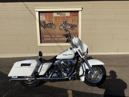 magnifique street glide 2006 avec seulement 77104 km (48565mi mais le compteur peu etre remplacer a la vente ) roue et fourche chromer , ape 14 pouces siege solo avec dossier conducteur , porte bafgage , lumiere led , exaus 50/50 turn down a voir la moto a une mention reconstruit et le financement est disponible !