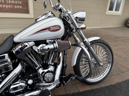 magnifique dyna low rider 2008 avec seulement 78042 km , stage 1 complet avec entre d air screaming eagle , roue av 21 x3.25 , fourche contrôle et swingharm chromer , mini plate forme et repose pied avant , mini ape , alarme Harley , crash bar , dossier passager et valise détachable a voir et le financement est disponible !