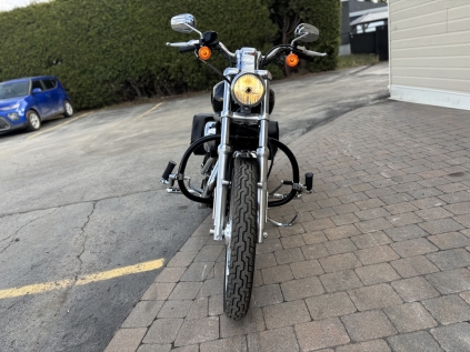 magnifique sportster 883 custom 2008 avec seulement 11979km , 5 vitesse crash bar avec hyw peg , valise harley, dossier passager , alarme harley a voir et le financement est disponible !