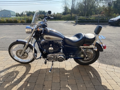magnifique sporster xl 1200 custom 2009 avec seulement 17658 mil (28252km ) suspension arrière de marque progressif ,dossier passager avec porte bagage , pare brise , exaus vances hines , crash bar avec hyw peg , a voir un vrai bijoux financement disponible !