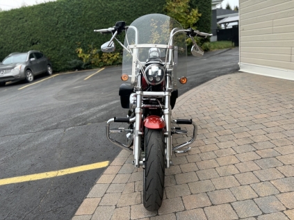 magnifique sporster low 2014 avec seulement 60232 km , valise Harley , pare brise détachable ,crash bar avec repose pied , siège solo mustang , ape 12 pouces , lumière avant en led , a voir une vrai beauté et le financement est disponible !!