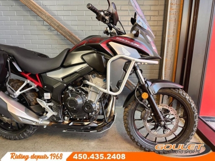 HONDA CB 500X \*\*\* LA MOTO AVENTURE FIABLE ET ÉCONOMIQUE DE HONDA - TRÈS BIEN ÉQUIPÉ \*\*\* La Honda CB500X 2021 est un trail léger polyvalent, idéal pour la route et les longues balades. Son moteur de 471 cc à injection offre une conduite douce et accessible, parfaite pour débutants comme pour usage quotidien. Sa position confortable et sa roue avant de 19 pouces assurent stabilité et aisance même sur chemins légers. \*\* Viens avec Valises arrière Honda, crashbar, parebrise, skidplate, protège mains et pneus type sentier \*\* - Moteur bicylindre 471?cc de 48hp environ à injection électronique - Châssis léger et maniable pour une excellente agilité en ville et sur route - Suspension avant et arrière de qualité assurant confort et contrôle - Freins à disque avec ABS pour une sécurité maximale - Tableau de bord numérique clair et lisible avec toutes les informations essentielles - Roues avant de 19 pc et arrière de 17 pc ?? Cette unité est disponible chez Goulet Moto Sports Ste-Thérèse. Téléphonez au 450.435.2408 Financement disponible avec plusieurs institutions financières. 2e chance au crédit possible. Goulet Moto Sports est votre concessionnaire moto depuis 1968. Fier représentant officiel des marques HONDA, APRILIA, MOTO GUZZI, VESPA, PIAGGIO, KTM, NIU, SURRON et URAL pour le grand Montréal. Nous avons aussi un vaste choix de motos usagées, toutes inspectées par nos professionnels. Deux adresses pour mieux vous servir : Sainte-Thérèse (450.435.2408) et Saint-Jérôme (450.431.6622). Goulet Moto Sports ne peut être tenu responsable d'une omission, d'un délai ou d'une erreur de transcription de l'information. Le prix affiché reflète la condition de l'unité. Les prix peuvent différer de ceux indiqués en ligne. Les données sont à titre indicatif seulement et ne peuvent être considérées comme contractuelles. Nous vous encourageons vivement à nous consulter pour plus de détails avant de vous déplacer. Des frais tels que taxes, immatriculation, administration ou autres peuvent s'appliquer. Se compare à : KTM 390 Adventure, BMW G310GS, Kawasaki Versys 650, Suzuki V-Strom 650, Yamaha Tracer 700 Garantie: 1 MOIS ---------------------- MOTO HONDA CB 500X \*\*\* HONDA'S RELIABLE AND ECONOMICAL ADVENTURE MOTORCYCLE - WELL-EQUIPPED WITH PANNIERS AND CRASHBAR \*\*\* The 2021 Honda CB500X is a versatile, lightweight adventure bike, ideal for road trips and long rides. Its 471cc fuel-injected engine offers a smooth and accessible ride, perfect for beginners and everyday use. Its comfortable riding position and 19-inch front wheel ensure stability and ease of handling, even on light trails. - 471cc twin-cylinder engine producing approximately 48hp with electronic fuel injection - Lightweight and maneuverable chassis for excellent agility in the city and on the highway - High-quality front and rear suspension ensuring comfort and control - Disc brakes with ABS for maximum safety - Clear and easy-to-read digital instrument panel with all essential information - 19" front and 17" rear wheels Comes with Honda rear saddlebags, crash bars, windshield, Hands guard, skid plate and trail tires ?? This unit is available at Goulet Moto Sports Ste-Thérèse. Call 450.435.2408 Financing available through several financial institutions. Second chance credit possible. Goulet Moto Sports has been your motorcycle dealer since 1968. Proud official representative of HONDA, APRILIA, MOTO GUZZI, VESPA, PIAGGIO, KTM, NIU, SURRON, and URAL for the Greater Montreal area. We also have a wide selection of used motorcycles, all inspected by our professionals. Two locations to better serve you: Sainte-Thérèse (450-435-2408) and Saint-Jérôme (450-431-6622). Goulet Moto Sports cannot be held responsible for any omissions, delays, or errors in the information provided. The price displayed reflects the condition of the unit. Prices may differ from those listed online. The data is for informational purposes only and is not contractually binding. We strongly encourage you to contact us for more details before visiting. Fees such as taxes, registration, administration, or other charges may apply. Compares to: KTM 390 Adventure, BMW G310GS, Kawasaki Versys 650, Suzuki V-Strom 650, Yamaha Tracer 700 Warranty: 1 MOIS