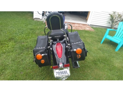 Siège passager, sacoches en cuir de chaque côté, ailles avant et arrière chromées