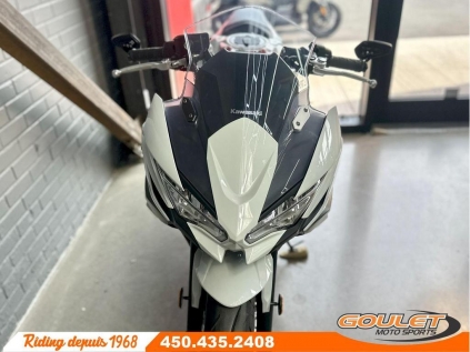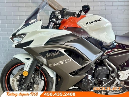 KAWASAKI NINJA EX 650R \*\*\* La moto est impeccable avec seulement 5305km - Couleur rare - PRIX RÉDUIT À 7395$ \*\*\* La Kawasaki Ninja 650 2023 allie parfaitement style agressif et performance accessible. Avec son moteur bicylindre de 649 cc, sa position de conduite confortable et sa maniabilité exceptionnelle, elle est idéale autant pour les trajets quotidiens que pour s'amuser sur route sinueuse. Un vrai équilibre entre sportivité et polyvalence ! Viens équipé avec mirroirs bout de poignée avec fender eliminator (passage de roue) - Bicylindre parallèle 649 cc, injection électronique, couple optimal à mi-régime. - Cadre treillis en acier haute résistance pour légèreté et rigidité. - Tableau de bord TFT couleur avec connectivité Bluetooth (Kawasaki Rideology). - Système de freinage ABS avec double disque avant ø300 mm. - Suspension arrière horizontale Back-Link pour stabilité et confort. Cette unité est chez Goulet Moto Sports de Ste-Thérèse. Téléphonez au 450.435.2408 Possibilité de financement avec plusieurs institutions financières. 2ième chance au crédit disponible. Goulet Moto Sports est votre concessionnaire moto depuis 1968. Fier représentant officiel des marques HONDA, APRILIA, MOTO GUZZI, VESPA, PIAGGIO, KTM, NIU, SURRON et URAL pour le grand Montréal. Nous avons un énorme choix de moto usagés inspectées par nos professionnels. 2 adresses pour vous servir, soit à Sainte-Thérèse (450.435.2408) et Saint-Jérôme (450.431.6622). Goulet Moto Sports ne peut être tenu responsable d'une omission, d'un délai ou d'une erreur de transcription de l'information. Le prix affiché reflète la condition de l'unité. Pour différentes raisons les prix peuvent différer de ceux indiqués en ligne. Les données sont affichées à titre indicatif seulement et ne peuvent être considérées comme une information contractuelle. Nous vous encourageons vivement à nous consulter pour plus de détails avant de vous déplacer. Des frais tels que taxes, immatriculation, administrations ou autres peuvent s'appliquer. Se compare à Yamaha R7, Honda CBR500R, Suzuki SV650, KTM RC 390, Yamaha MT-07, Kawasaki Z650, Honda CB650R, Triumph Trident 660, Suzuki GSX-8S, Yamaha XSR700 Garantie: 1 mois ---------------------- KAWASAKI NINJA EX 650R \*\*\* The bike is immaculate with only 5,305 km - Rare color - REDUCED PRICE \*\*\* The 2023 Kawasaki Ninja 650 perfectly combines aggressive styling and accessible performance. With its 649 cc twin-cylinder engine, comfortable riding position, and exceptional handling, it's ideal for both daily commuting and fun on winding roads. A true balance between sportiness and versatility! Comes equipped with handlebar-end mirrors with fender eliminator (under the wheel arch). - 649 cc parallel twin-cylinder, electronic fuel injection, optimal mid-range torque. - High-strength steel trellis frame for lightness and rigidity. - Color TFT instrument panel with Bluetooth connectivity (Kawasaki Rideology). - ABS braking system with dual ø300 mm front discs. - Back-Link horizontal rear suspension for stability and comfort. This unit is at Goulet Moto Sports in Ste-Thérèse. Call 450.435.2408. Financing available with several financial institutions. Second chance credit available. Goulet Moto Sports has been your motorcycle dealership since 1968. Proud official representative of the HONDA, APRILIA, MOTO GUZZI, VESPA, PIAGGIO, KTM, NIU, SURRON, and URAL brands for the greater Montreal area. We have a huge selection of used motorcycles inspected by our professionals. We have two locations to serve you: Sainte-Thérèse (450.435.2408) and Saint-Jérôme (450.431.6622). Goulet Moto Sports cannot be held responsible for any omissions, delays, or transcription errors. The price displayed reflects the condition of the unit. For various reasons, prices may differ from those indicated online. The data displayed is for informational purposes only and should not be considered contractually binding. We strongly encourage you to contact us for more details before your visit. Fees such as taxes, registration, administration, or other charges may apply. Compare to Yamaha R7, Honda CBR500R, Suzuki SV650, KTM RC 390, Yamaha MT-07, Kawasaki Z650, Honda CB650R, Triumph Trident 660, Suzuki GSX-8S, and Yamaha XSR700 Warranty: 1 mois