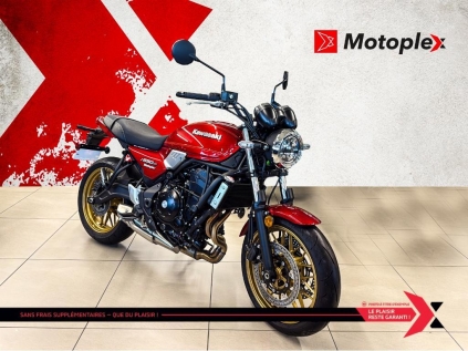 Z650RS La Kawasaki Z650RS combine un style rétro avec la technologie d’une sportive moderne. Certaines des particularités incluant un phare à DEL rond classique, une instrumentation analogue et le design et les couleurs inspirés des années 70, en plus du moteur bicylindre, créent une superbe nouvelle référence dans le segment des néo-rétros. La Kawasaki Z650RS est destinée à impressionner les conducteurs de tout niveau grâce à son esprit de RÉTROVOLUTION. La marque japonaise Kawasaki, largement connue pour ses motos et motomarines à performance inégalée, offre aussi des VTT et côtes-à-côtes tout aussi intéressants. motos et vtts non disponible a la succursale de St-Eustache GARANTIE PROLONGÉE jusqu'à 4 ans disponible et plan d’entretien Financement approuvé — 1re, 2e et 3e chance au crédit! Testez-nous et trouvez la meilleure solution, au meilleur taux. Votre incontournable du financement ! PLEASE DON'T HESITATE TO CONTACT US, WE SPEAK ENGLISH AS WELL ! Nous prenons tout véhicule d’échange Prix Garanti. AUCUN FRAIS CACHÉS, prix affiché valide sur financement ou paiement comptant. *(taxe en sus) We speak English contact us. LIVRAISON PARTOUT AU Québec Mentions légales au financement, consultez notre site Internet. GARANTIE PROLONGÉE jusqu'à 4 ans disponible et plan d’entretien disponible uniquement chez groupe motoplex