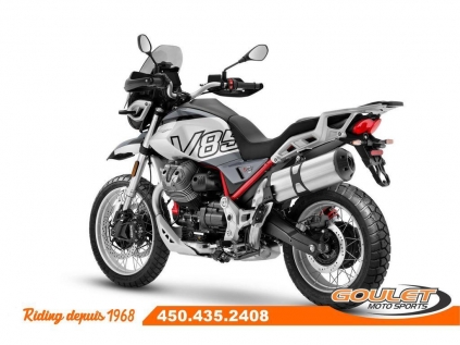 MOTO GUZZI V85TT - GRIGIO TAMBORA \*\*\* Frais de transport et préparation inclus dans le prix \*\*\* Le Moto Guzzi V85 Strada 2025 est équipé d'un moteur V-twin de 850cc avec de nouvelles têtes de moteur améliorées, offrant une meilleure gestion thermique, moins de vibrations et des performances optimisées. Sa suspension avant inversée de 41 mm, son système de freinage avec disques de 320 mm et son contrôle de traction ajustable assurent une conduite stable et sécurisée sur tous les terrains. Le tableau de bord numérique TFT complète l'ensemble pour une expérience de conduite moderne et connectée. - Nouveau moteur V2 Transversal désormais avec calage variable des soupapes produisant maintenant 80hp et plus de couple (torque). - 5 Modes de conduite (Road, Rain, Off-Road, Sport et User) - Contrôle de tractionajustable MGCT - Régulateur de vitesses (Cruise Control) - Nouveau écran couleur TFT de 5.0 pc - Nouveau parebrise ajustable 5 positions - Frein ABS avec mode ajustable - Arbre d'entrainement (Driveshaft) Cette unité est chez Goulet Moto Sports de Ste-Thérèse. Téléphonez au 450.435.2408 Possibilité de financement avec plusieurs institutions financières. 2ième chance au crédit disponible. Taux de financement spécial uniquement disponible sur prix de détail (voir condition sur Moto Guzzi Canada) Goulet Moto Sports est votre concessionnaire moto depuis 1968. Fier représentant officiel des marques HONDA, APRILIA, MOTO GUZZI, VESPA, PIAGGIO, KTM, NIU, SURRON et URAL pour le grand Montréal. Nous avons un énorme choix de moto usagés inspectées par nos professionnels. 2 adresses pour vous servir, soit à Sainte-Thérèse (450.435.2408) et Saint-Jérôme (450.431.6622). Goulet Moto Sports ne peut être tenu responsable d'une omission, d'un délai ou d'une erreur de transcription de l'information. Le prix affiché reflète la condition de l'unité. Pour différentes raisons les prix peuvent différer de ceux indiqués en ligne. Les données sont affichées à titre indicatif seulement et ne peuvent être considérées comme une information contractuelle. Nous vous encourageons vivement à nous consulter pour plus de détails avant de vous déplacer. Des frais tels que taxes, immatriculation, administrations ou autres peuvent s'appliquer. La Moto Guzzi V85TT se compare à une BMW F 850GS, une Triumph Tiger, une KTM 790 Adventure, Yamaha Ténéré 700 ou une Africa Twin Essence, Transmission: Manuelle, 6 vitesses, Système de refroidissement: Refroidi à l'air, 2 cylindres, 80.0 CV, 853.0 L, Garantie: 2 ans ---------------------- MOTO GUZZI V85TT - GRIGIO TAMBORA \*\*\* Shipping and handling included in the price \*\*\* The 2025 Moto Guzzi V85 Strada features an 850cc V-twin engine with new, improved engine heads, offering better thermal management, less vibration, and optimized performance. Its 41mm inverted front suspension, 320mm disc brakes, and adjustable traction control ensure a stable and secure ride on all terrains. The TFT digital instrument panel completes the package for a modern and connected riding experience. - New transverse V2 engine, now with variable valve timing, now producing 80hp and more torque. 5 Riding Modes (Road, Rain, Off-Road, Sport, and User) - Adjustable MGCT Traction Control - Cruise Control - New 5.0" TFT Color Display - New 5-Position Adjustable Windshield - ABS Brake with Adjustable Mode - Driveshaft This unit is at Goulet Moto Sports in Ste-Thérèse. Call 450.435.2408 Financing available with several financial institutions. Second chance credit available. Special financing rates only available on retail prices (see conditions on Moto Guzzi Canada). Goulet Moto Sports has been your motorcycle dealer since 1968. Proud official representative of the HONDA, APRILIA, MOTO GUZZI, VESPA, PIAGGIO, KTM, NIU, SURRON, and URAL brands for the greater Montreal area. We have a huge selection of used motorcycles inspected by our professionals. Two locations to serve you, in Sainte-Thérèse (450.435.2408) and Saint-Jérôme (450.431.6622). Goulet Moto Sports cannot be held responsible for any omission, delay, or transcription error. The price displayed reflects the condition of the unit. For various reasons, prices may differ from those indicated online. The data displayed is for informational purposes only and should not be considered contractual information. We strongly encourage you to contact us for more details before visiting. Fees such as taxes, registration, administration, and other charges may apply. The Moto Guzzi V85TT compares to a BMW F 850GS, a Triumph Tiger, a KTM 790 Adventure, a Yamaha Ténéré 700, or an Africa Twin. Gasoline, Transmission: Manual, 6 speeds, Cooling System: Air cooling, 2 cylinders, 80.0 HP, 853.0 L, Warranty: 2 ans