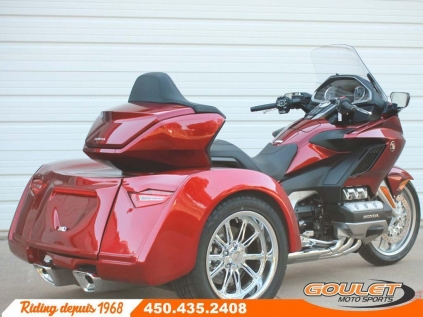 KIT MOTOR TRIKE POUR HONDA GOLDWING TOUR GÉNÉRATION 2018-2026 \*\*\* Prix pour kit installé\*, moto non incluse - contactez-nous pour une soumission sur votre moto \*\*\* Transforme ton Honda Goldwing GL1800 en trike avec suspension indépendante arrière avec un kit Motor Trike. Le kit Condor IRS de Motor Trike est spécifique aux Goldwing de 2018 et plus, que ce soit le bagger, DCT ou Airbag. C'est le trike le plus confortable et stable grâce à sa suspension indépendante arrière ajustable à l'air. Vivez la meilleure expérience de votre vie. Avec ses lignes de carrosserie audacieuses, parfaitement adaptées à notre suspension arrière indépendante la plus agressive à ce jour, la conversion Condor pour motos Honda Gold Wing vous permet de contrôler votre moto. Goulet Moto Sports fait des transformations Trike depuis plus de 25 ans avec plus de 200 conversions en trike depuis le début. Nous sommes les experts et les premiers à en faire au Québec. LE KIT MOTOR TRIKE CONDOR IRS - Spécifique pour les Honda Goldwing 2018 a 2025 - Suspension Indépendante Arrière (IRS) - Compresseur à air pour l'ajustement de la suspension - Plus de 10 cm de débattement de suspension - Amortisseurs à ressorts progressifs et ballons d'air pour l'ajustement. Commande de suspension visuelle à l'avant - Système arrière de frein à disque avec kit ABS arrière - Prise de courant 12 volts dans le coffre - Peinture et installation inclus - Avance de fourche (rake kit) de 6 degrés pour faciliter la conduite disponible - Frein à main disponible pour les modèles manuel (non-inclus) Plusieurs accessoires en option pour une transformation à ton goût comme les marchepieds color match avec des fog au choix, peinture spéciale, les protèges ailes en cuir, le bumper arrière, un choix de roue (mag) optionnel pour rehausser le look. Tapis de valise, avance de fourche et même la renverse pour faciliter la conduite. Une transformation Motor Trike est faite sur commande et peut prendre de 3 à 7 semaines pour être complété selon les options et peintures. Tout est fait chez Motor Trike, même la peinture. Goulet Moto Sports s'occupe de la transformation finale et de l'installation sur votre moto de choix. Nous pouvons aussi nous occuper de la certification à la SAAQ. Voir les conditions chez Goulet Moto Sports. \* Le prix est approximatif et peux varier selon le moment de la commande et les options. Il inclus l'installation et la peinture 1 ton, prêt à partir. Le taux de change, coût de transport, accessoires, tarifs douaniers et autres conditions peuvent affecter le prix. Possibilité de financement avec plusieurs institutions financières. 2ième chance au crédit disponible. Non combinable à toute autre offre. Goulet Moto Sports est votre concessionnaire moto depuis 1968. Fier représentant officiel des marques HONDA, APRILIA, MOTO GUZZI, VESPA, PIAGGIO, KTM, NIU, SURRON et URAL pour le grand Montréal. Nous avons un énorme choix de moto usagés inspectées par nos professionnels. 2 adresses pour vous servir, soit à Sainte-Thérèse (450.435.2408) et Saint-Jérôme (450.431.6622). Goulet Moto Sports ne peut être tenu responsable d'une omission, d'un délai ou d'une erreur de transcription de l'information. Le prix affiché reflète la condition de l'unité. Pour différentes raisons les prix peuvent différer de ceux indiqués en ligne. Les données sont affichées à titre indicatif seulement et ne peuvent être considérées comme une information contractuelle. Nous vous encourageons vivement à nous consulter pour plus de détails avant de vous déplacer. Des frais tels que taxes, immatriculation, administrations, transport, certification, tarif douanier ou taux de change et autres peuvent s'appliquer ou affecter le prix. Se compare avantageusement a un trike California Sidecar (CSC), Harley Davidson Trike tri glide, BRP Spyder Garantie: 3 ans ---------------------- MOTOR TRIKE KIT FOR HONDA GOLDWING TOUR GENERATION 2018-2026 \*\*\* Price for installed kit\*, motorcycle not included - contact us for a quote on your motorcycle\*\*\* Transform your Honda Goldwing GL1800 into a trike with independent rear suspension with a Motor Trike kit. The Condor IRS kit from Motor Trike is specific to Goldwings from 2018 and up, whether bagger, DCT, or Airbag. It's the most comfortable and stable trike thanks to its air-adjustable independent rear suspension. Have the best ride of your life. With its bold body lines, perfectly matched to our most aggressive independent rear suspension to date, the Condor conversion for Honda Gold Wing motorcycles puts you in control of your bike. Goulet Moto Sports has been doing trike conversions for over 25 years, with over 200 trike conversions since its inception. We are the experts and the first to do so in Quebec. THE CONDOR IRS MOTOR TRIKE KIT - Specific for 2018 to 2025 Honda Goldwings - Independent Rear Suspension (IRS) - Air compressor for suspension adjustment - Over 10 cm of suspension travel - Progressive spring shock absorbers and air chambers for adjustment. Visual suspension control at the front - Rear disc brake system with rear ABS kit - 12-volt power outlet in the trunk - Painting and installation included - 6-degree fork rake kit for easier handling - Parking brake available for manual models (not included) Several optional accessories for a transformation to your liking, such as color-matched running boards with fog lights of your choice, special paint, leather fender guards, rear bumper, and optional wheel (mag) choices to enhance the look. Luggage mats, fork rake, and even a rear brake sprocket for easier handling. A Motor Trike conversion is custom-made and can take 3 to 7 weeks to complete depending on the options and paint job. Everything is done at Motor Trike, even the paint job. Goulet Moto Sports handles the final conversion and installation on your chosen motorcycle. We can also handle SAAQ certification. See conditions at Goulet Moto