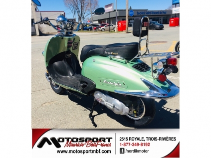 Scooter 4 temps de marque Scooterre Nostalgia 50 « 2022 » à 3,199$* ou 80$** / mois Superbe scooter 4 temps de la marque Québécoise ScootTerre de modèle NOSTALGIA 50 « 2022 » tout neuf à seulement 3,199$* ou 80$** par mois ! Roulez avec style sur ce superbe scooter NOSTALGIA 50 au style Italien à seulement 3,199$ * ou 80$**/mois. Épargnez gros avec le scooter NOSTALGIA 50 qui permet de rouler pour seulement 2.2 litres aux 100 km et vous permet de rendre votre adolescent autonome pour aller à l'école, au boulot ou partout où il le désire pendant que vous vaquer à nos occupations. Ce scooter est munit d'un moteur 4 temps 49cc qui nécessite peut d'entretien qui vous permettra d'atteindre une vitesse de pointe de plus 65 km/h et des accélérations impressionnantes! Il est munit de frein avant à disque et arrière à tambour qui assure un excellent freinage. Soyez vert cette été sans vous ruiner avec ce superbe scooter, venez le voir, ça vaut le détour! Osez comparer avec nos véhicules avec la compétition (Artic Cat, BRP Can-Am, Honda, Kawasaki, Polaris, Suzuki, Yamaha) et vous économiserez des milliers de $. Au plaisir de vous servir! MOTOSPORT MAURICIE BOIS-FRANCS 2515 Royale Au cœur de Trois-Rivières depuis 2005 Sans frais 877-349-8192 Site web www.motosportmbf.com CONCESSIONNAIRE DES MARQUES ; Apollo Motors, Bercomac, Brigg & Stratton, Daymak, Gio Motors, Go Trax, Honda Petits Moteurs, Hisun, Husqvarna (Red Max), Linhai, ScootTerre, Slane, Tao Motors *Taxes en sus ** Prêt ouvert sur 60 mois à taux fixe