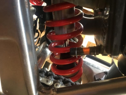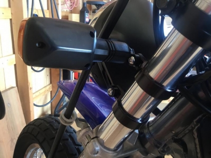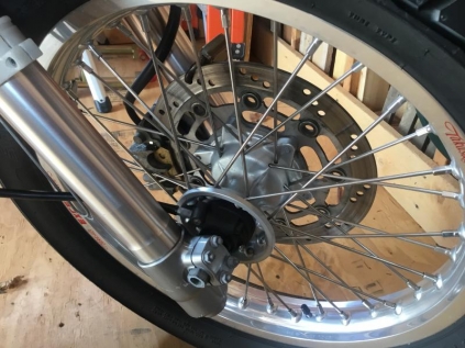 Moto double usage, améliorée pour routes de terre et d'asphalte. Travaux effectués par atelier professionnel.