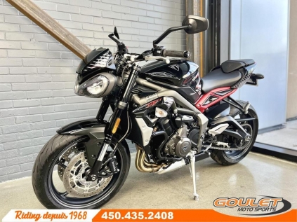 Moto Triumph Street Triple R 765 \*\*\* MOTO QUASI NEUVE ET IMPECCABLE AVEC SEULEMENT 3617KM \*\*\* Avec son moteur 3 cylindres typique chez Triumph, cette Street Triple développe un très impressionnant 121hp avec 59lb de couple (torque). Mais outre son look naked super réussi, c'est une moto moderne avec son écran couleur TFT et tout son équipement électronique. - Moteur 3 cylindres DOHC, 4V par cylindre de 765cc - 6 vitesses Shift Assist - 3 modes de conduite (Road, Rain, Sport) - Écran TFT avec lap timer, position de vitesses, TPMS Ready, - Contrôle de traction ajustable - Freins ABS Cette unité est chez Goulet Moto Sports de Ste-Thérèse. Téléphonez au 450.435.2408 Possibilité de financement avec plusieurs institutions financières. 2ième chance au crédit disponible. Goulet Moto Sports est votre concessionnaire moto depuis 1968. Fier représentant officiel des marques HONDA, APRILIA, MOTO GUZZI, VESPA, PIAGGIO, KTM, NIU, SURRON et URAL pour le grand Montréal. Nous avons un énorme choix de moto usagés inspectées par nos professionnels. 2 adresses pour vous servir, soit à Sainte-Thérèse (450.435.2408) et Saint-Jérôme (450.431.6622). Goulet Moto Sports ne peut être tenu responsable d'une omission, d'un délai ou d'une erreur de transcription de l'information. Le prix affiché reflète la condition de l'unité. Pour différentes raisons les prix peuvent différer de ceux indiqués en ligne. Les données sont affichées à titre indicatif seulement et ne peuvent être considérées comme une information contractuelle. Nous vous encourageons vivement à nous consulter pour plus de détails avant de vous déplacer. Des frais tels que taxes, immatriculation, administrations ou autres peuvent s'appliquer. Essence, Transmission: Manuelle, 6 vitesses, Système de refroidissement: Refroidi au liquide, 3 cylindres, 120.0 CV, 765.0 CC, Garantie: Balance de garantie ou 1 mois ---------------------- Triumph Street Triple R 765 motorcycle \*\*\* ALMOST NEW AND IMPECCABLE MOTORCYCLE WITH ONLY 3617KM \*\*\* With its typical Triumph 3-cylinder engine, this Street Triple develops a very impressive 121hp with 59lb of torque. But apart from its super successful naked look, it is a modern motorcycle with its TFT color screen and all its electronic equipment. - 3-cylinder DOHC engine, 4V per cylinder of 765cc - 6 speed Shift Assist - 3 driving modes (Road, Rain, Sport) - TFT screen with lap timer, gear position, TPMS Ready, - Adjustable traction control - ABS brakes This unit is at Goulet Moto Sports in Ste-Thérèse. Call 450.435.2408 Possibility of financing with several financial institutions. 2nd chance credit available. Goulet Moto Sports has been your motorcycle dealership since 1968. Proud official representative of the HONDA, APRILIA, MOTO GUZZI, VESPA, PIAGGIO, KTM, NIU, SURRON and URAL brands for greater Montreal. We have a huge selection of used motorcycles inspected by our professionals. 2 addresses to serve you, in Sainte-Thérèse (450.435.2408) and Saint-Jérôme (450.431.6622). Goulet Moto Sports cannot be held responsible for an omission, delay or error in transcribing information. The price shown reflects the condition of the unit. For various reasons prices may differ from those indicated online. The data is displayed for informational purposes only and cannot be considered as contractual information. We strongly encourage you to contact us for more details before traveling. Fees such as taxes, registration, administration or others may apply. Gasoline, Transmission: Manual, 6 speeds, Cooling System: Liquid cooling, 3 cylinders, 120.0 HP, 765.0 CC, Warranty: Balance de garantie ou 1 mois