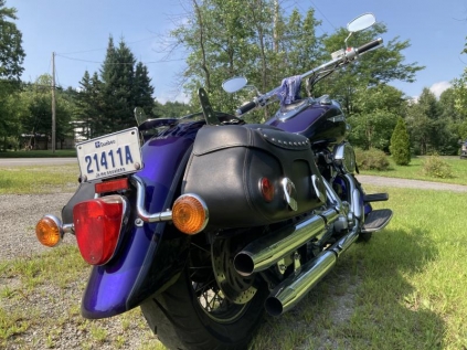 Rabais du printemps. Baisse de prix. Était 4500,00, maintenant 3799,00$. Toute offre raisonnable pourrait être acceptée. Custom fiable et puissante de 1600 cc, très confortable pour les grandes randonnées. Un plaisir à conduire. 2 pneus neufs de marque Michelin Commander, batterie neuve. Pare-brise ajustable, siège et dossier passager inclus. Entrée d'air supercharge (hyper charger) installée avec carburateur ajusté. Entretien du supercharge et filtre à air fait en août 2024. Moto abaissée de 1/2 pouce (swing arm original inclus pour remettre la moto à sa hauteur d'origine). Guidon surélevé de 1 1/4 pouces ( guidon Drag bar Hot Rod qui donne un style agressif, fournie un meilleur effet de levier et améliore la position de conduite. Valises de côté en cuir véritable cloutées avec support anti-battement. Reposes-pieds avant grand confort. Viens avec toutes les pièces d'origine. Très beau son, comme un Harley mais à moindre coût. Tuyaux d'échappement d'origine inclus.